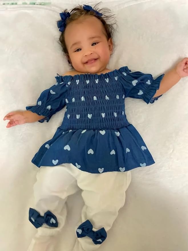 3PCS Baby Girl Clothes Ruffle Floral Shirt Tops Pants Headband Outfit Sets