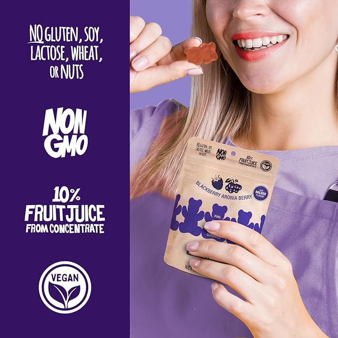 Buck Naked Bears - Blackberry Aronia Gummy Bears - Soft, Smooth & Sweeter Like a Fruit Snack - Plant-Based, Vegan, Non-GMO - Non-GMO - 3.5oz (3-Pack)