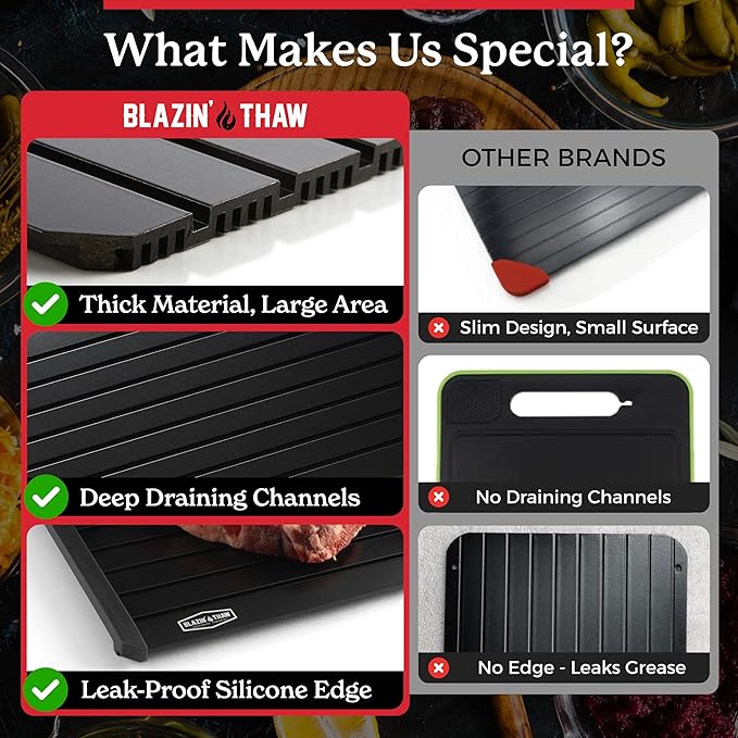 BLAZIN' THAW Defrosting Tray for Frozen Meat | 16" Family-Size | Aluminium Plate for Thawing Frozen Food | Natural Thawing Process | No Microwaves, No Cold/Warm Water Required |