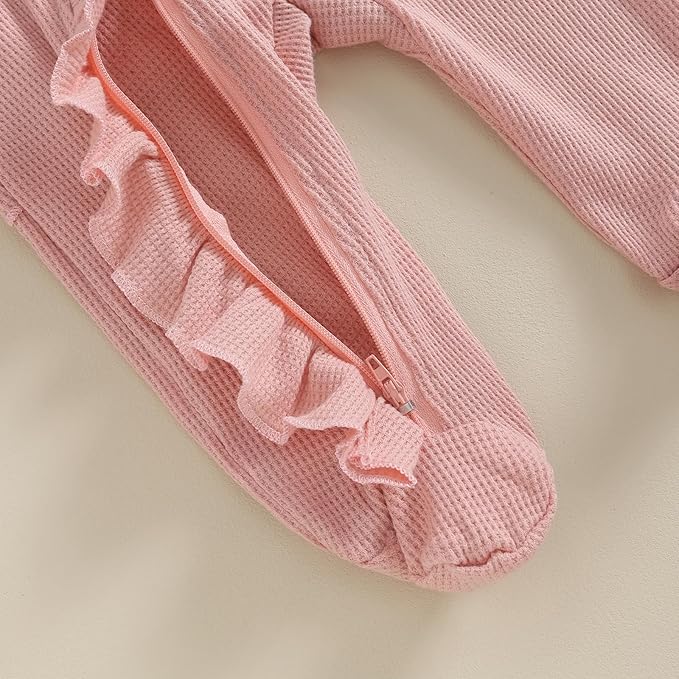 Newborn Girl Clothes Baby Girl Coming Home Outfit Zipper One-piece Outfits Ruffle Footie Bodysuit Jumpsuit Headband