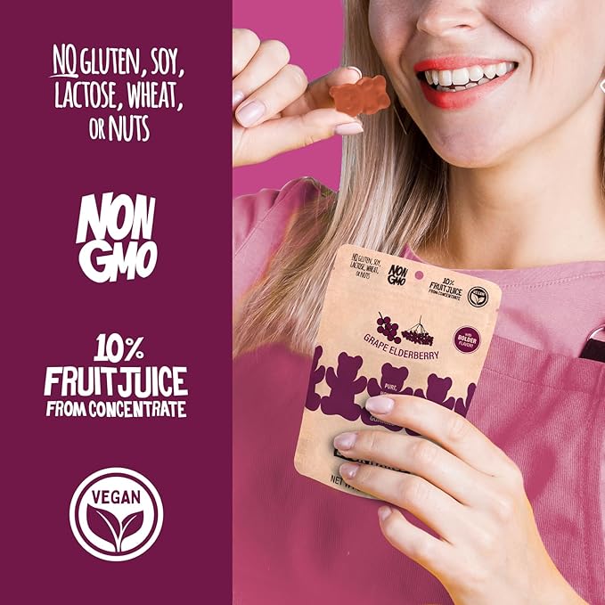Buck Naked Bears - Grape Elderberry Gummy Bears - Soft, Smooth, and Sweeter Like a Fruit Snack - Plant-Based Gummies Good Snack Choice - Non-GMO - Clean Label Gummy Candy, Vegan - 3.5oz 3-Pack