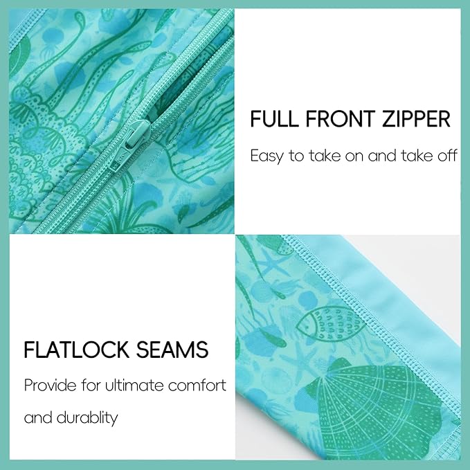 • Full-Front Zipper: Baby sunsuit features a full-front zipper, making it easy to put on and take off quickly even when wet (including changing diapers), thus simplifying daily care