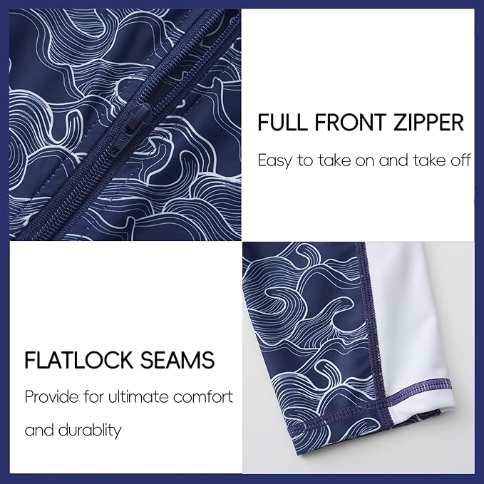 - Full-Front Zipper: Baby sunsuit features a full-front zipper, making it easy to put on and take off quickly even when wet (including changing diapers), thus simplifying daily care