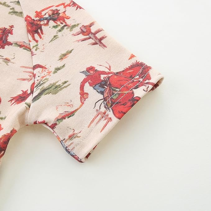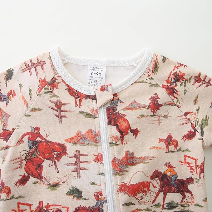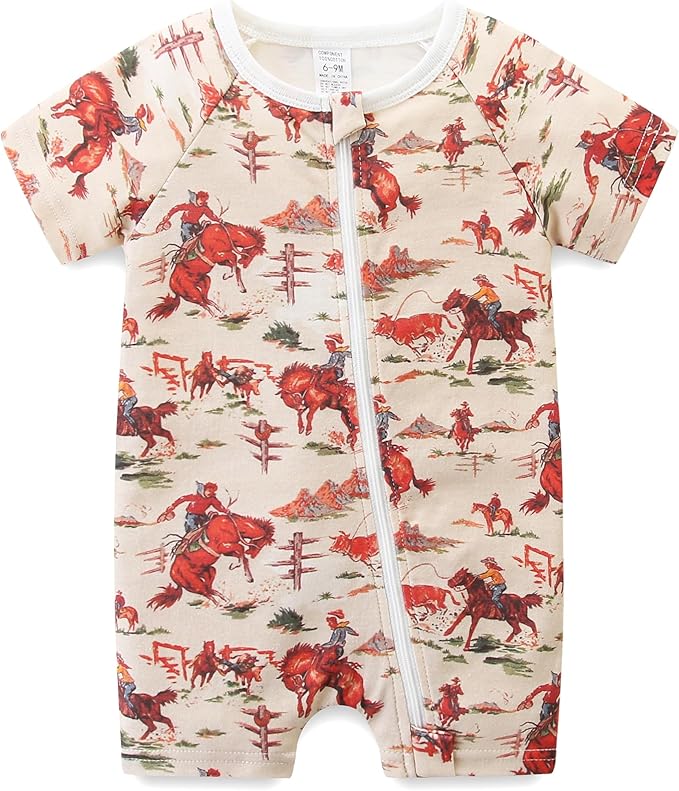 - Unique Pattern Design:Short Sleeve Western Baby Clothes, Baby Boy Western Clothes, Baby Girl Western Clothes, Baby Cowboy Print Romper Onesies, Dinosaur Design Romper,Coming Home Outfit for Baby, Your Baby Will Love it