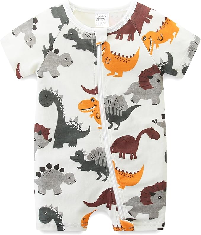 • Double Zipper Design: The Baby Short Sleeve Romper is Designed with Reversible 2-Way Zipper, Footless, Which is Easy for Baby Diaper Changing, The Zip Will Protect Your Little One's Chin and Skin