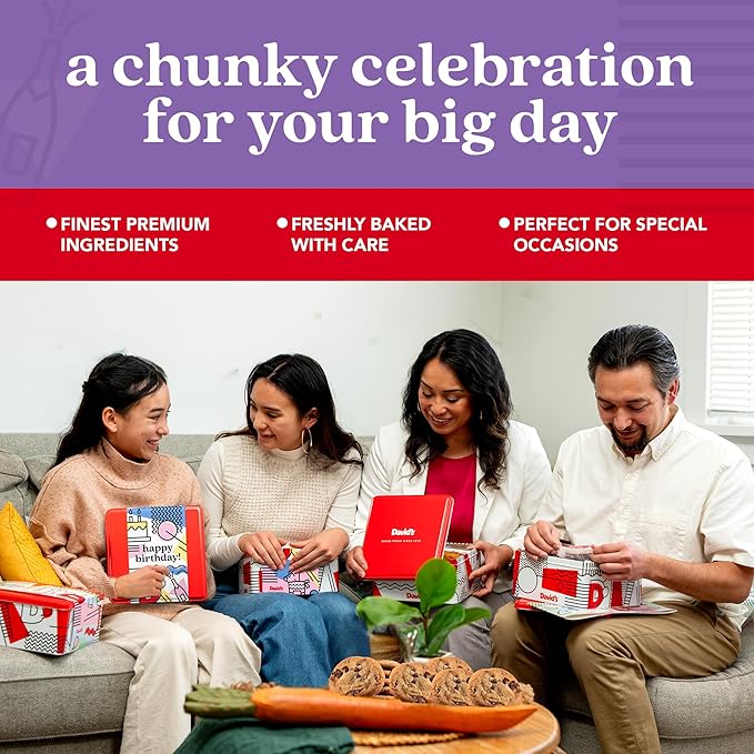 - Celebrate in Style: Make birthdays extra special with David's Cookies Happy Birthday Chocolate Chunk Cookies Tin. These 2lbs of handmade, fresh-baked gourmet cookies are perfect for creating unforgettable birthday moments.