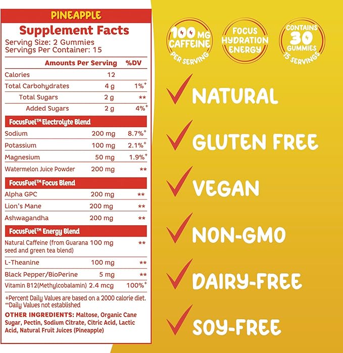 - A FUEL FOR ANY SITUATION – Whether at work or on the go, these gummies offer a convenient and mess-free way to maintain energy and focus throughout the day.