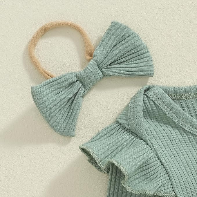 - Feature: Newborn girl clothes, baby girl romper, long sleeve, round neck, ruffle, letter print, elastic waistband, solid color. Comes with a headband, baby girl clothing set.