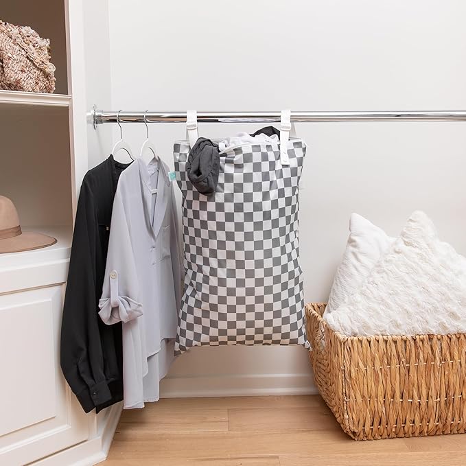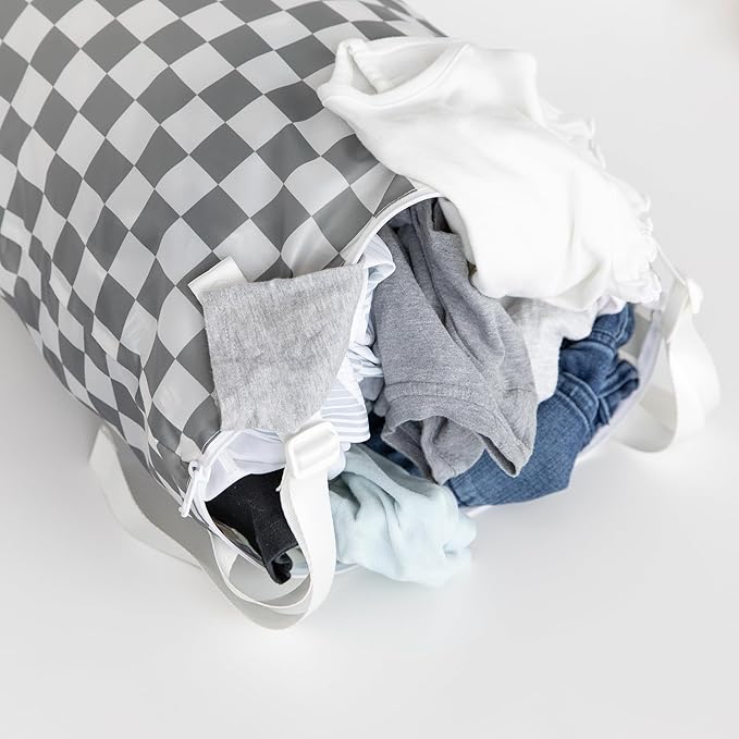 Bumkins Waterproof Hanging Wet Bag Large for Baby, Laundry, Dirty Clothes, Travel, Swim Suit, Cloth Diapers, Pool, Towels, Daycare, Beach, Zip Reusable Bag, Wetdry Vacation Packing, XL Gray Check