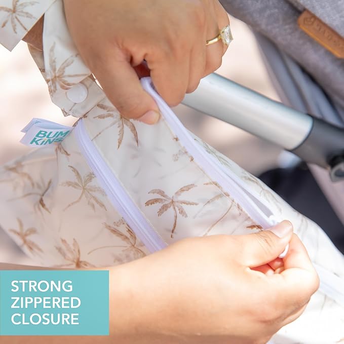 Bumkins Waterproof Wet Dry Clutch Bag for Baby, Travel, Swim Suit, Cloth Diapers, Pump Parts, Pool, Gym Clothes, Toiletry, Strap to Stroller, Daycare, Zip Reusable Bag, Packing Pouch, Palm Trees