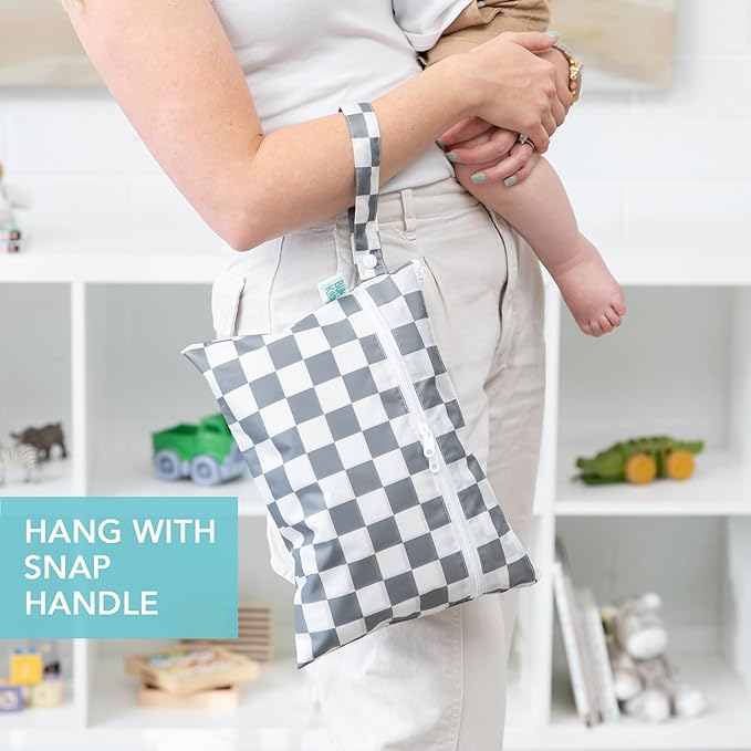 - LOTS OF USES – Not just for wet stuff - these bags make excellent organizers for storage and travel; with a snap handle, snap your bag wherever you need it - stroller, changing table or suitcase; packing for trips to beach, park, picnic, pool, camping