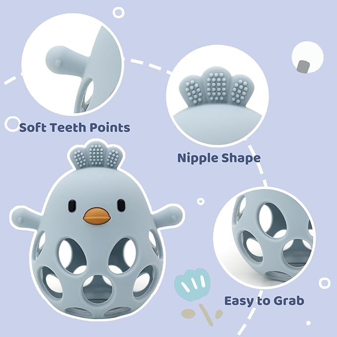 - Teething Toys for Babies - The silicone teething toys is has the small holes on bottom, easy to babies to hold onto the teethers. The cute shape is also a toys for your baby.