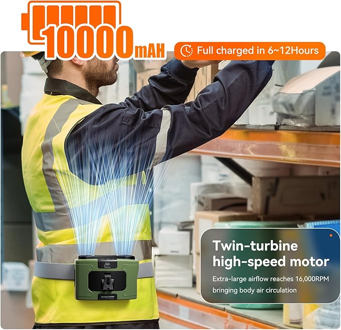 10000mAh Personal Waist Fan, USB Rechargeable Clip The Waist For Working,10 Speed & 40H Cooling and Heatstroke Prevention For Outdoor Travel Camping (K60-green, 12000mAh)