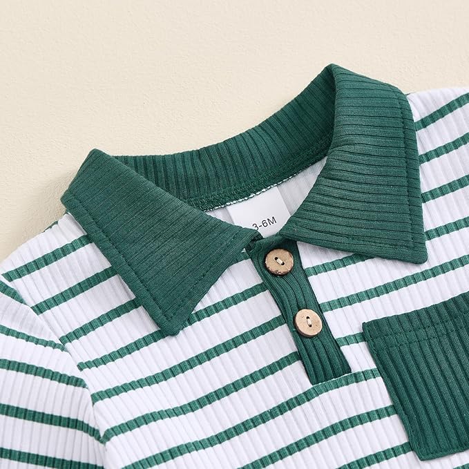 - Design: Neutral baby clothes. Solid color/ striped, v-neck and button design, snap closure for easier changing diapers, knit ribbed long sleeve romper top matching with solid elastic waistband drawstring long pants. Simple yet stylish. Perfect for spring/fall/winter.