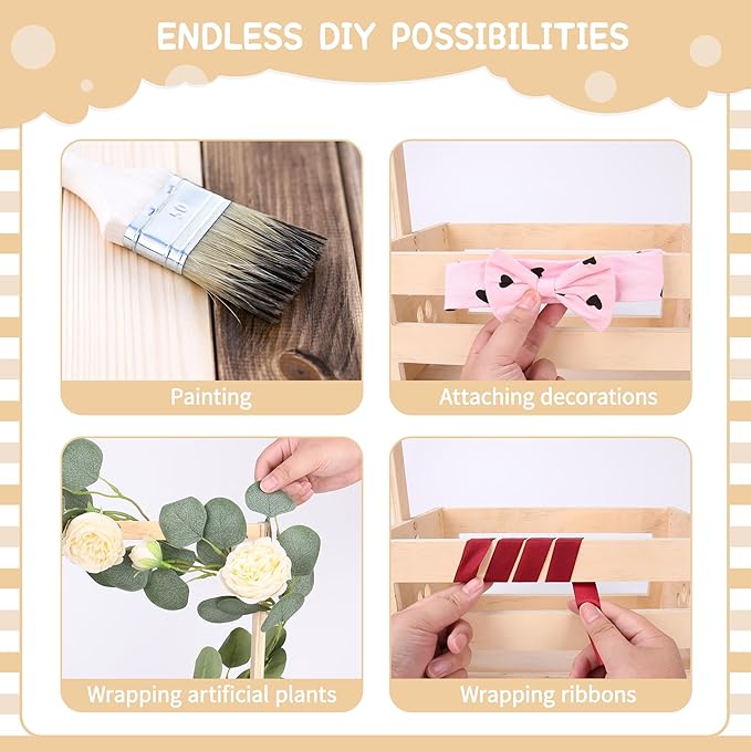 - 【UNLEASH YOUR IMAGINATION】You can unleash your imagination to DIY decorate this baby shower gift basket in any way that is unique and meaningful to you. You can choose to paint, add ornaments, decorate it with artificial flowers, ribbons, etc. This baby shower crate is waiting for your creative decoration.