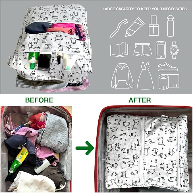 FLOCK THREE 3D Waterproof and Washable Wet Bag Luggage Organiser for Travel storage Stroller Daycare Baby Diapers Yoga Beach Pool Swimsuits Luggage Packing for Travel Accessories (White Cats)