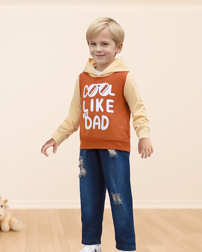 - Eye Catching Design - Toddler boy clothes outfits set have hoodie sweatshirt with letter print,matching denim elastic pants are easy to dress and bring convenience for movement.