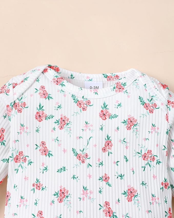 Renotemy Newborn Baby Girl Clothes Outfits Infant Romper Ruffle Floral Pants Cute Toddler Baby Girl Clothes Set