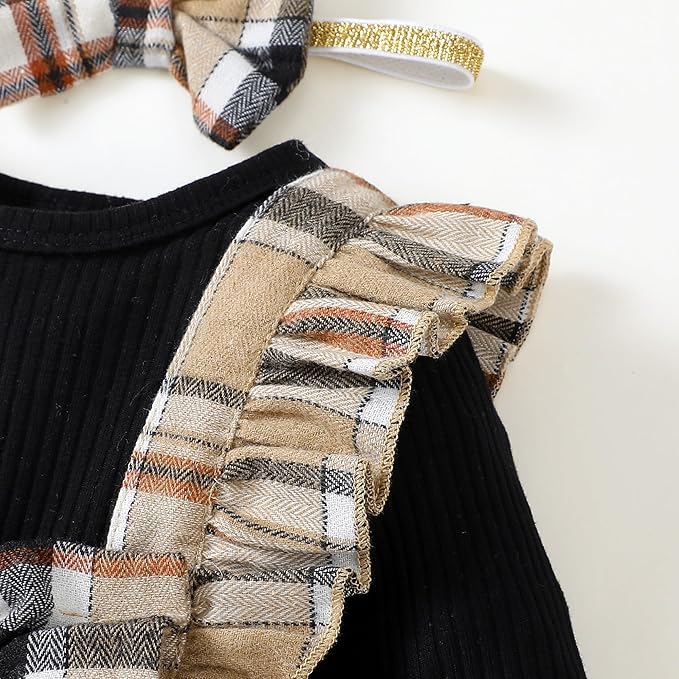 - Cute Clothes for Baby Girls: Ruffle long sleeve romper in fake two-pieces design, plaid baby jumpsuit with little bows, snap leg opening baby clothes for easy diaper changes and gentle dressing, this newborn infant baby fall winter outfit are both functional and fashionable, sure to make your girl get lots of compliments.