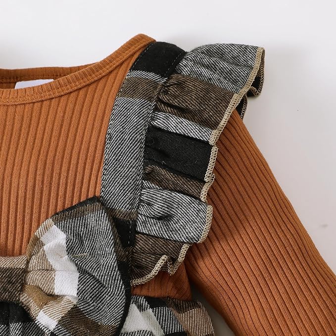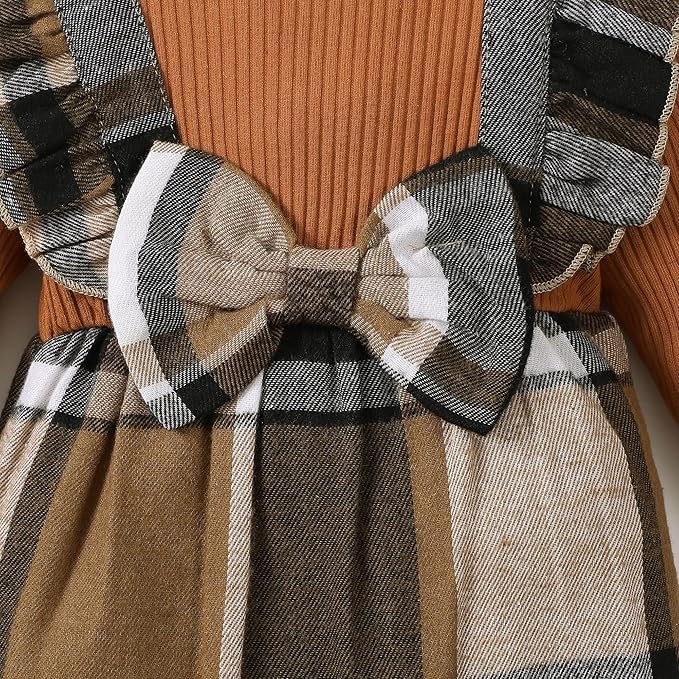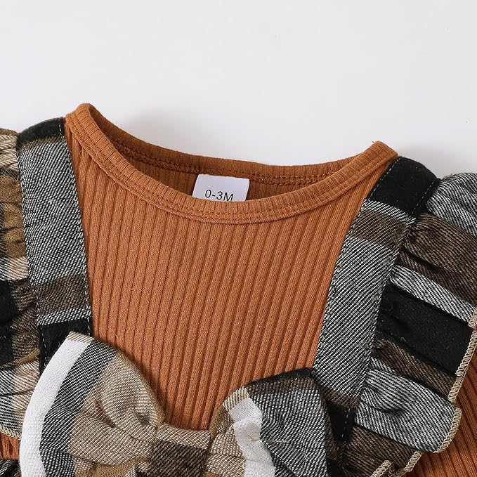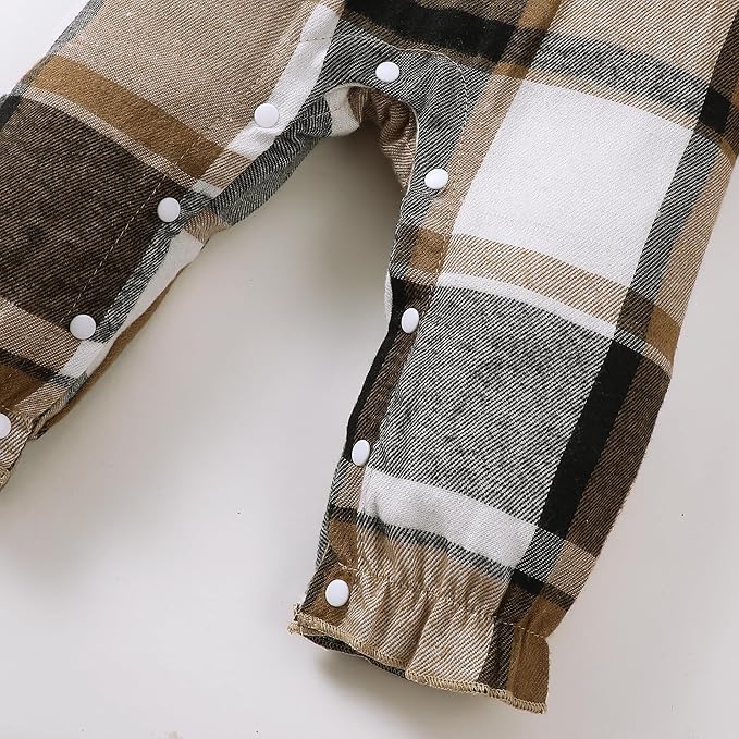 - Cute Clothes for Baby Girls: Ruffle long sleeve romper in fake two-pieces design, plaid baby jumpsuit with little bows, snap leg opening baby clothes for easy diaper changes and gentle dressing, this newborn infant baby fall winter outfit are both functional and fashionable, sure to make your girl get lots of compliments.