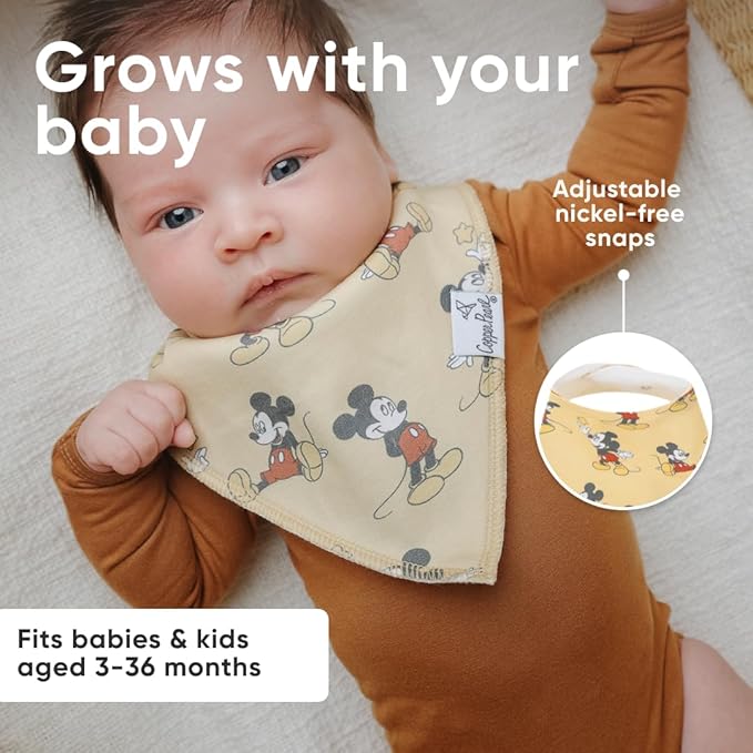 - ADJUSTABLE NICKEL FREE SNAPS; Each baby bandana bib comes with 2 nickel-free snaps that allow each bib to be adjustable in size to fit newborns and toddlers, with ages ranging from 3-24 months; The snaps are secure, making it difficult for infants and toddlers to unfasten but are easy for parents to snap on and off