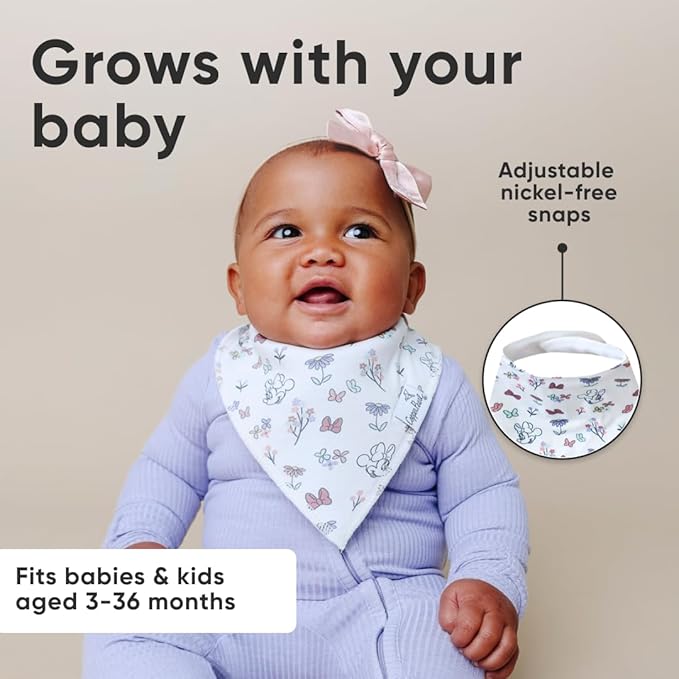 - ADJUSTABLE NICKEL FREE SNAPS; Each baby bandana bib comes with 2 nickel-free snaps that allow each bib to be adjustable in size to fit newborns and toddlers, with ages ranging from 3-24 months; The snaps are secure, making it difficult for infants and toddlers to unfasten but are easy for parents to snap on and off