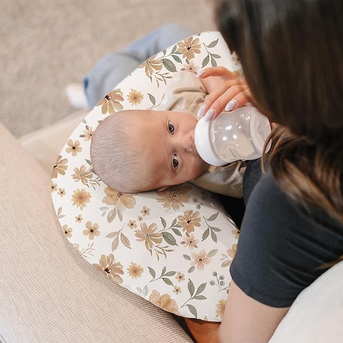 Konssy 2 Pack Nursing Pillow Covers, Stretchy and Soft Nursing Cover for Breastfeeding Pillows, Pillow Slipcover for Baby Girls Boys Newborn (Beige,Watercolour-Flower)
