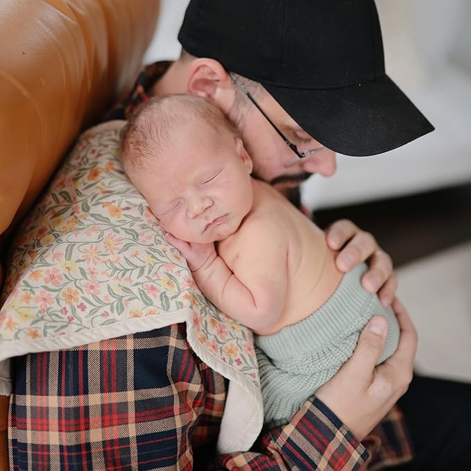 mushie Muslin Baby Burp Cloths | 100% Organic Cotton, Set of 2 (Pastel Blooms/Fog)