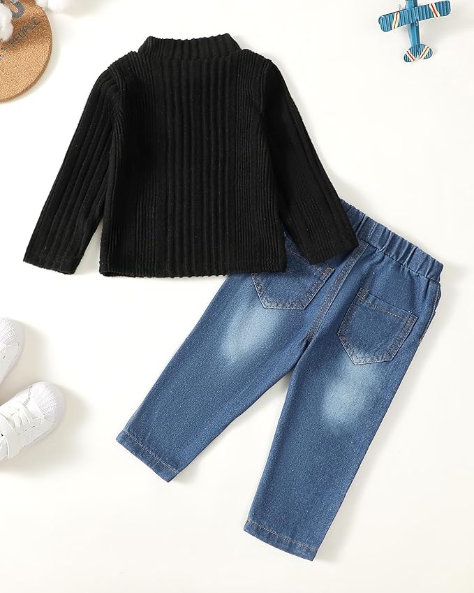 - Package Included: You will get 1*baby boys long sleeve sweater + 1*matching denim jean