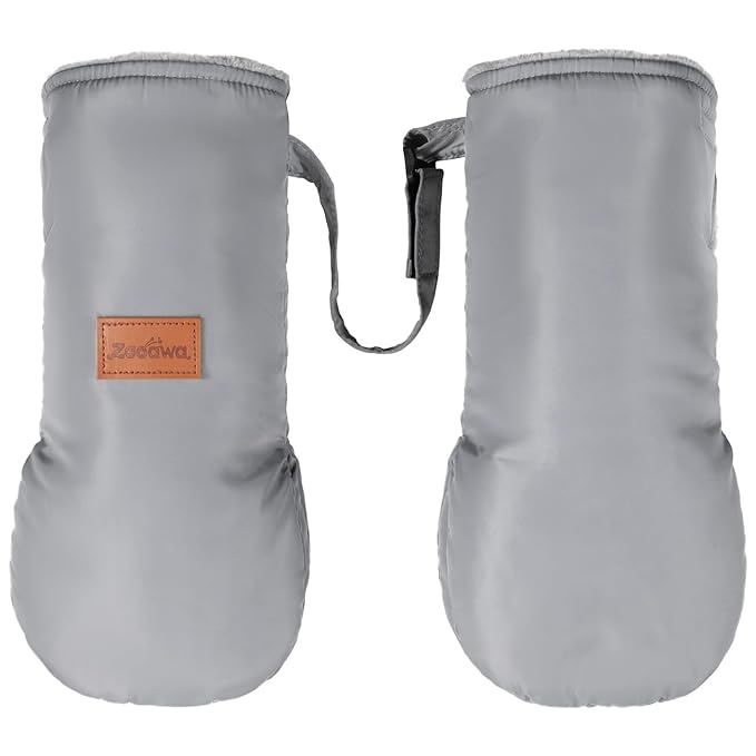 Zooawa Stroller Gloves, Universal Stroller Hand Muff with Warm Polar Fleece, Baby Stroller Gloves with Vel-cro Design, Waterproof and Snowproof Stroller Mittens for Stroller Accessories, Gray