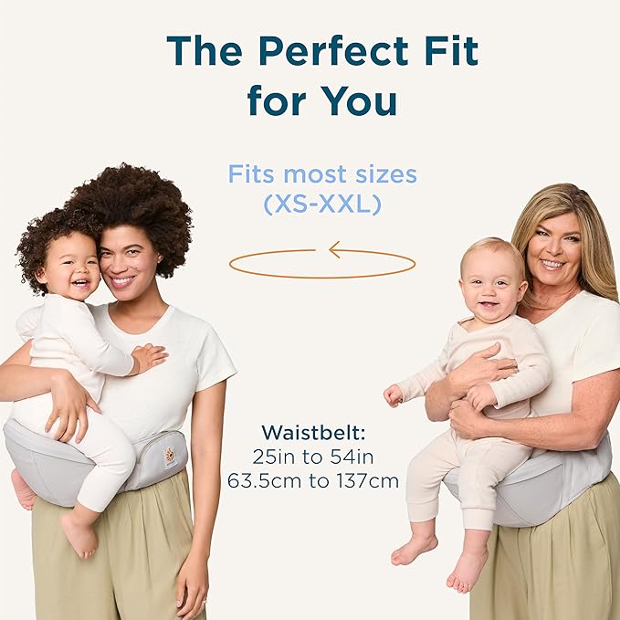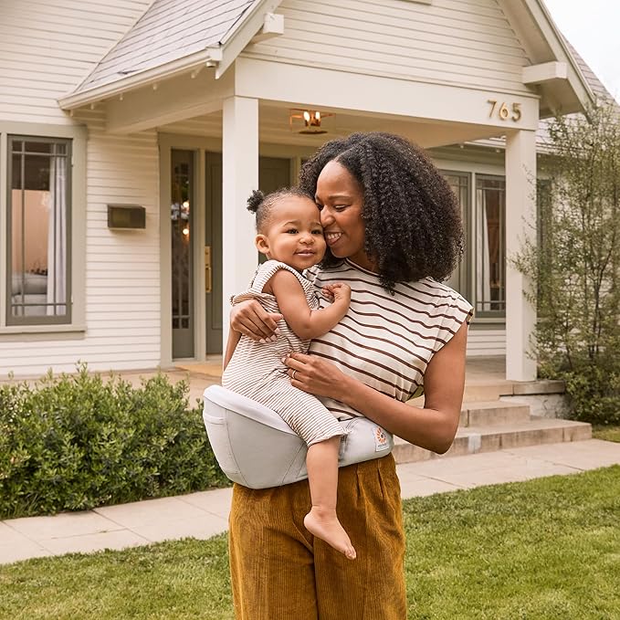 - ERGONOMIC HIP SUPPORT: Designed to support baby’s hips in a natural seated position, this hip baby carrier features a wide curved seat with cushioned padding and anti-slip fabric to help maintain comfort and stability while being carried.