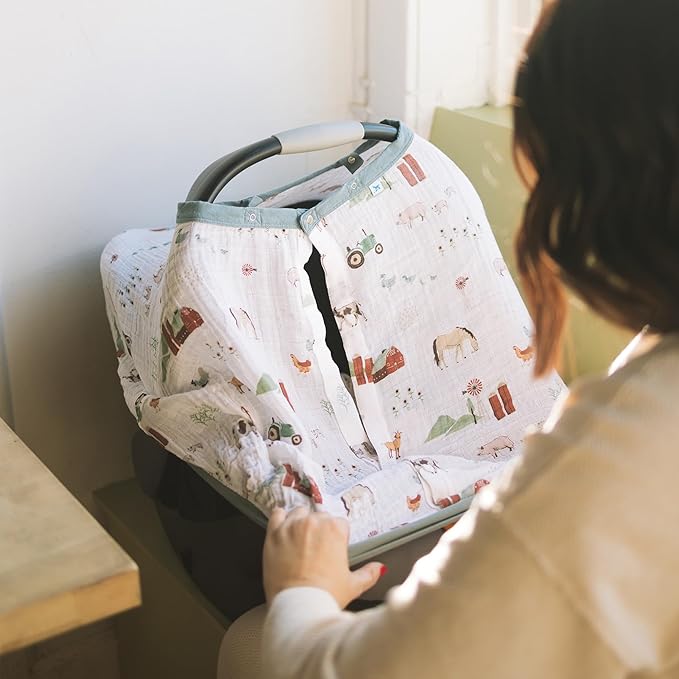 Little Unicorn Breathable Car Seat Canopy | Magnetic Closure Cover & Universal Fit | Protection & Privacy for Baby (Farmyard)