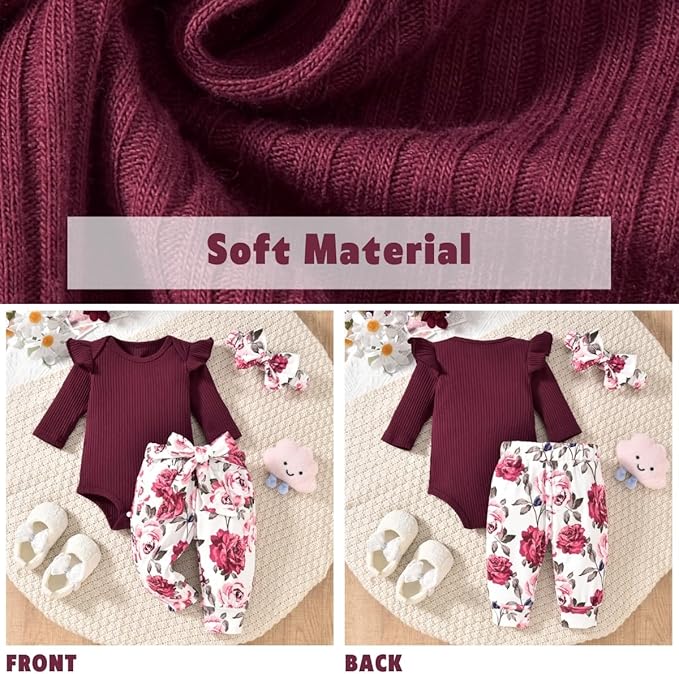 Aalizzwell Preemie Newborn Infant Baby Girls Clothes Ribbed Romper Bodysuit Pants Set Fall Winter Outfits