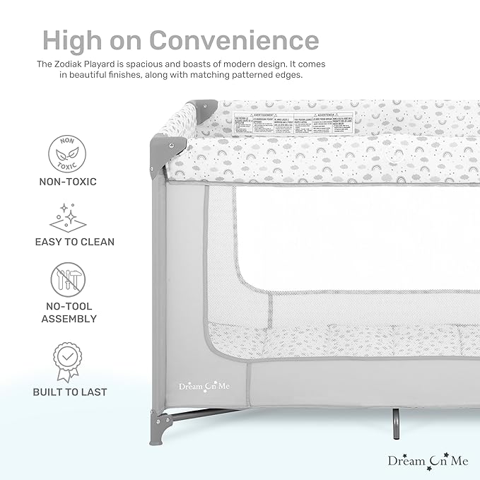 Dream On Me Zodiak Portable Playard in Cool Gray, Lightweight, Packable and Easy Setup Baby Playard, Breathable Mesh Sides and Soft Fabric - Comes with a Removable Padded Mat