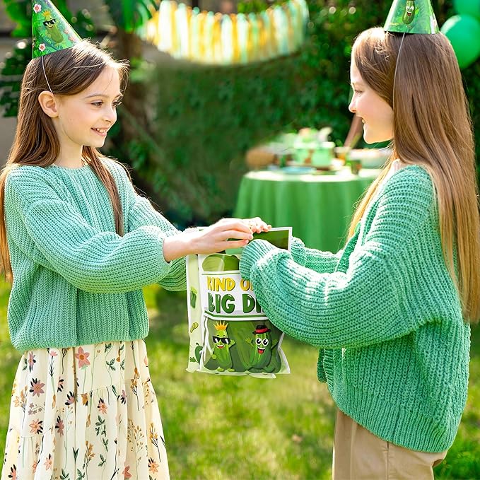 - Funny Pickle Patterns: Our pickle birthday party bags are cleverly designed and visually appealing. All of our pickle themed goodie bags are printed with different patterns and colors on the front and back, with attractive designs on both the front and back. These vegetable themed candy bags can be used with other party supplies to add more fun and surprise to this delightful holiday.