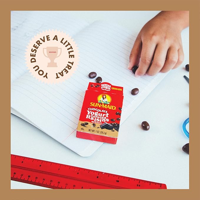 - YOGURT COVERED RAISINS: California Sun-Dried Raisins wrapped in a creamy blanket of vanilla yogurt or chocolate yogurt