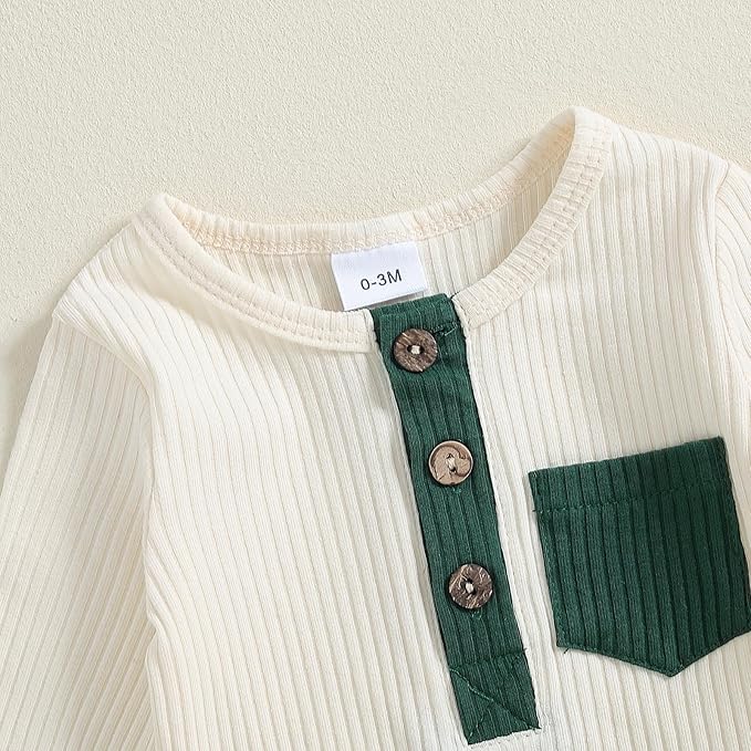 fhutpw Baby Boy Clothes 3 6 12 18 Months Ribbed Knitted Long Sleeve Romper and Pants Sets Newborn Fall Splicing Color Outfits