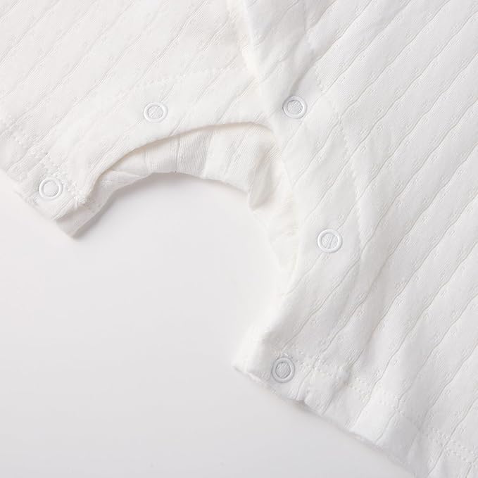 - ★BREATHABLE FABRIC ★ Our unisex baby snap-up rompers are made of organic cotton pointelle. Excellent breathability ! pointelle fabric offers exceptional breathability, effectively wicking away sweat and keeping the body dry and comfortable, best suitable for summer/hot days. Strong moisture absorption ! Cotton fibers have strong moisture absorption capabilities, quickly absorbing body sweat to maintain dryness and promote overall health