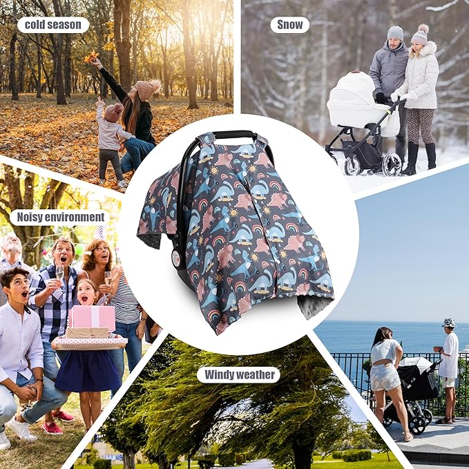 Metplus 2 in 1 Dinosaur Baby Car Seat Cover, Car Seat Canopy for Babies, Mom Multiuse Nursing Cover, Minky Baby Carrier Covers, Newborn Boy Girl, Peekaboo Opening