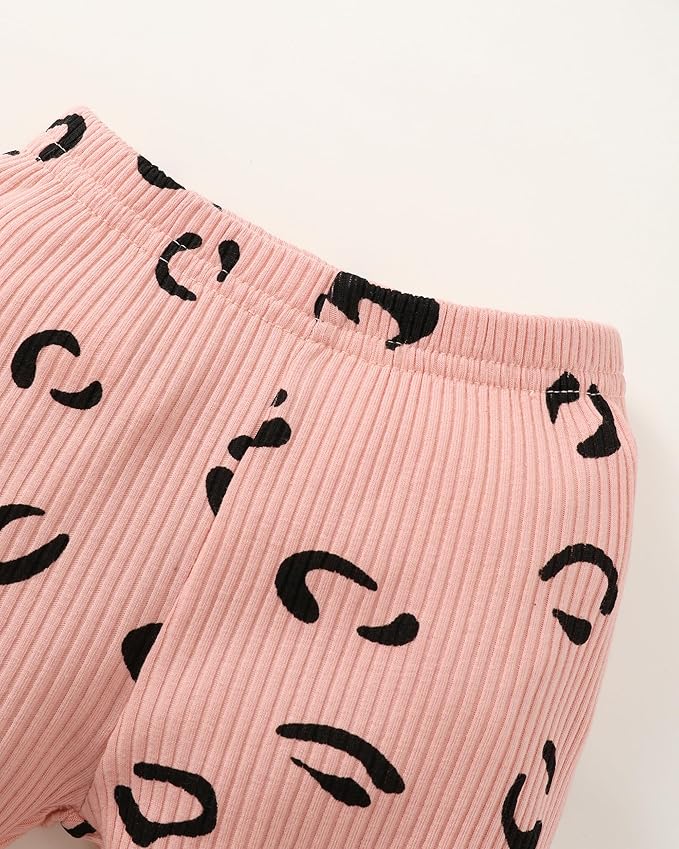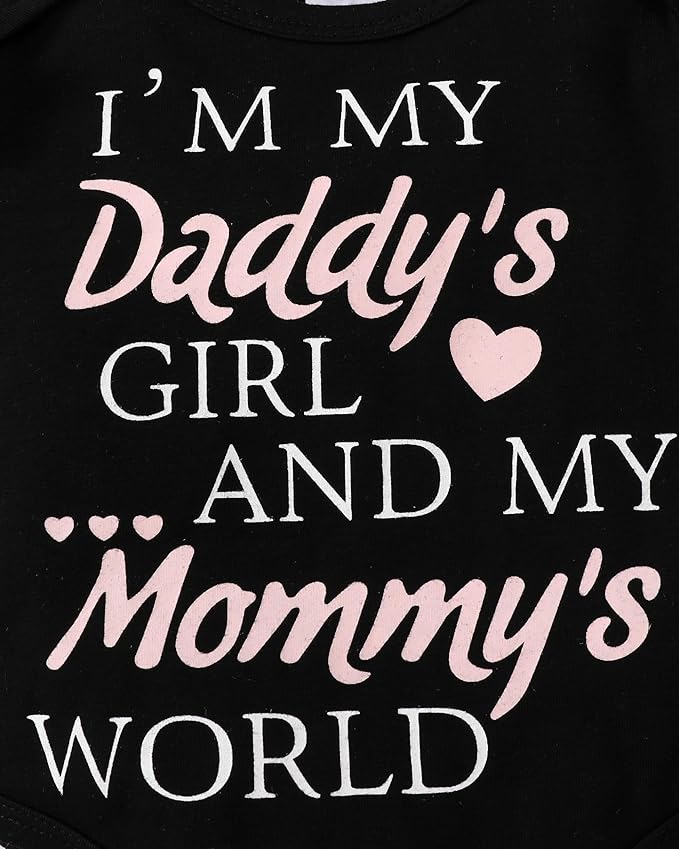 - Unique Design:long sleeve black romper matching adorable ruffle fly sleeve,The bottom of the romper has a snap-button design for easy diaper change,pink long pants with an elastic waistband.This baby girl outfit comes with a headflower and a hat,such a perfect 4 pieces suit gift for your little baby.