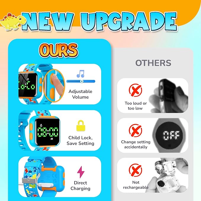 - Perfect Gift: 7 sets of cyclic countdown timers, 15/30/45/60/90 mins, 2, 3 hours, which not only supports potty training but also helps build good habits. Kids will love this adorable dinosaur watches. Packaged in a beatiful box, making it the ideal present for toddler boys 18 months and up!