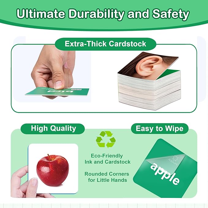 - 【Safe & Durable Flash Cards for Kids】Extra-thick cardboard learning cards with double-sided lamination and rounded corners survive spills, endless repetition, and toddler chaos! Rigorously tested for both physical and chemical safety, they’re free from harmful substances—100% safe for young children.