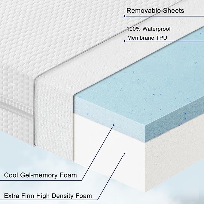 - 【Dual Sided Firmness】Mini Crib Mattress has dual sided of firmness to provide support and comfort for babies at different stages of growth. The softer side features cooling gel memory foam and the firmer side features high-density support foam.