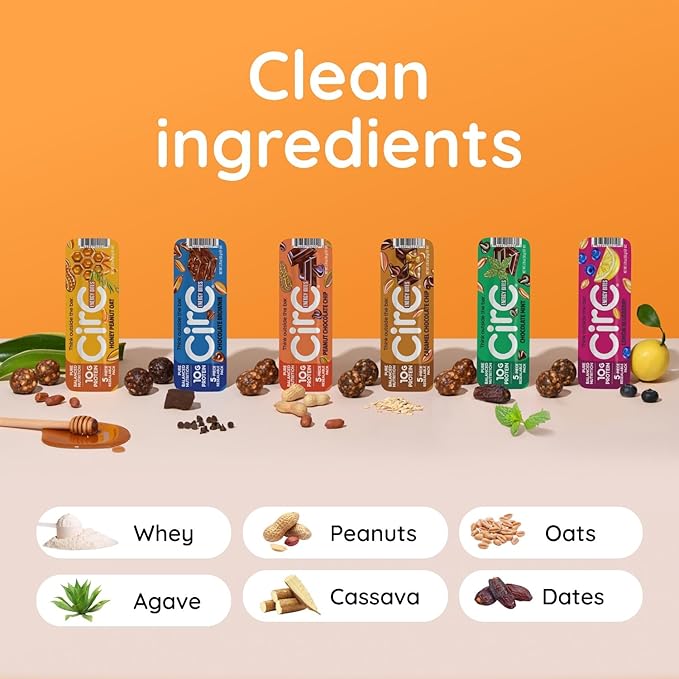- PORTABLE ENERGY BITES: CirC reimagined the protein bar as 5 snackable energy bites, perfect for on-the-go, at work, or post-workout. Made with simple, natural ingredients like peanuts, oats, dates, and sustainable whey crisp, each high protein energy ball offers a well-balanced, homemade taste.