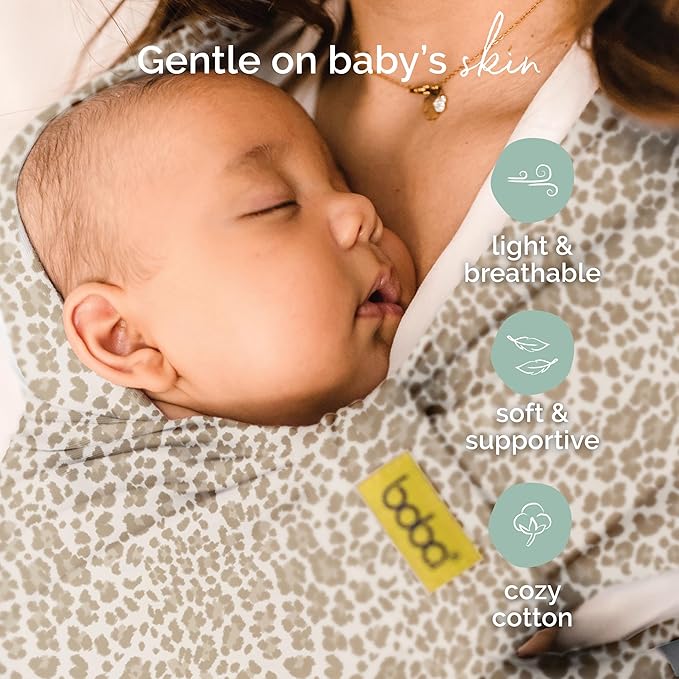 Boba Bliss Pre-Wrapped Baby Carrier with Buckle - Newborn to 7-35 lbs Light, Breathable & Easy to Adjust Hybrid Infant Sling & Toddler Carrier - Certified Hip-Healthy for 0-18 Months - Sand Leopard