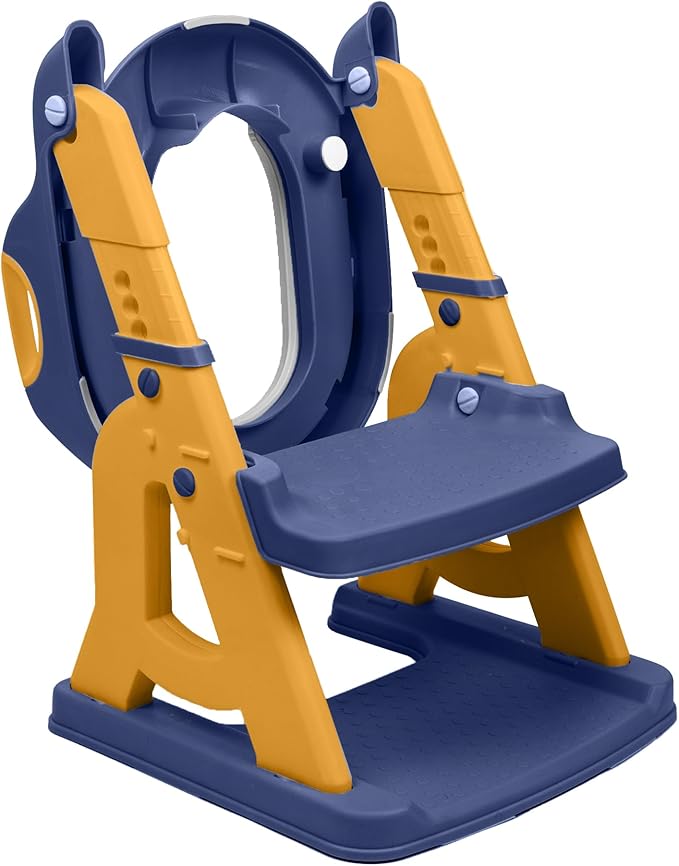 - [2-IN-1 MULTIFUNCTIONAL DESIGN]: The Bambinao potty training seat doubles as both a toddler toilet ladder and a sturdy step stool, giving children independence to reach sinks, counters, or shelves on their own. This versatile kids potty trainer also works as a baby potty chair or portable toilet training seat for boys and girls, perfect for everyday routines like brushing teeth, washing hands, or helping in the kitchen. Its lightweight build makes it easy for kids to move without assistance, and the foldable design ensures convenient storage when not in use. The wide, anti-slip pedal provides secure footing for climbing, while the ergonomic handles offer extra stability.