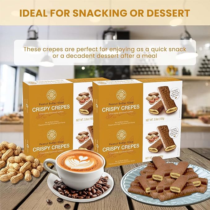 - Authentic Craftsmanship: Expertly crafted using high-quality ingredients, these chocolate crepes reflect a commitment to quality. Savor the rich and creamy combination of milk chocolate and peanut butter in these crepes chocolate.