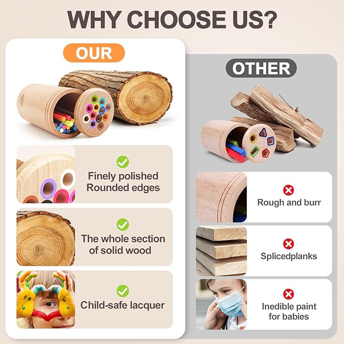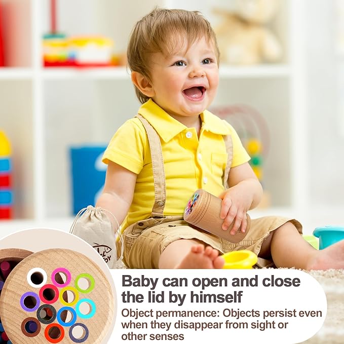 - Learning Sensory Toys for Toddlers: 24 colorful wooden sticks for learning geometry and counting, build color recognition skills, and exercise child's spatial concepts.The lid is designed not to be too tight, making it easier for babies to open it by themselves.It helps babies understand that objects will continue to exist even when they are out of sight- object permanence