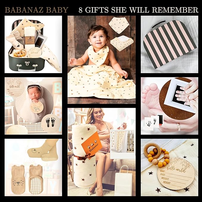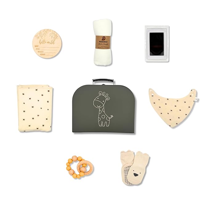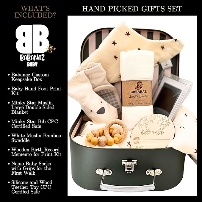 - ✨ Premium Quality and Craftsmanship - Every item in this unisex baby gift set is hand-selected for top quality and meticulously packaged in a stylish memento metal clasp suitcase, ensuring that your gift stands out and is cherished.