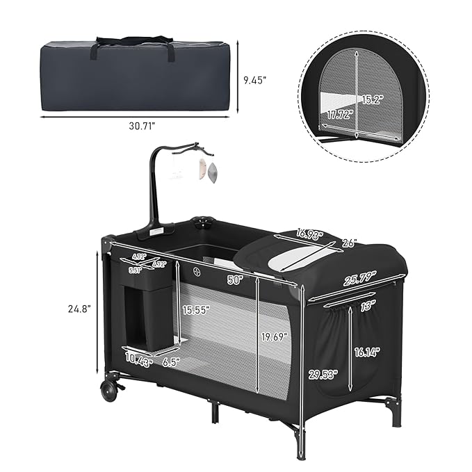 - Portable and Travel-Friendly: Lightweight and foldable design makes this pack and play easy to transport, perfect for travel or visits to family and friends. Wheels with brakes provide effortless mobility while ensuring stability when stationary.